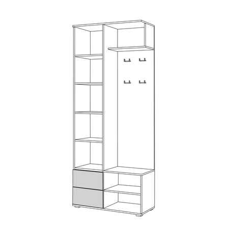 В линейке присутствуют модули с нестандартной конструкцией, которые не оставят без внимания узкие углы, повышая вместимость прихожей в разы.