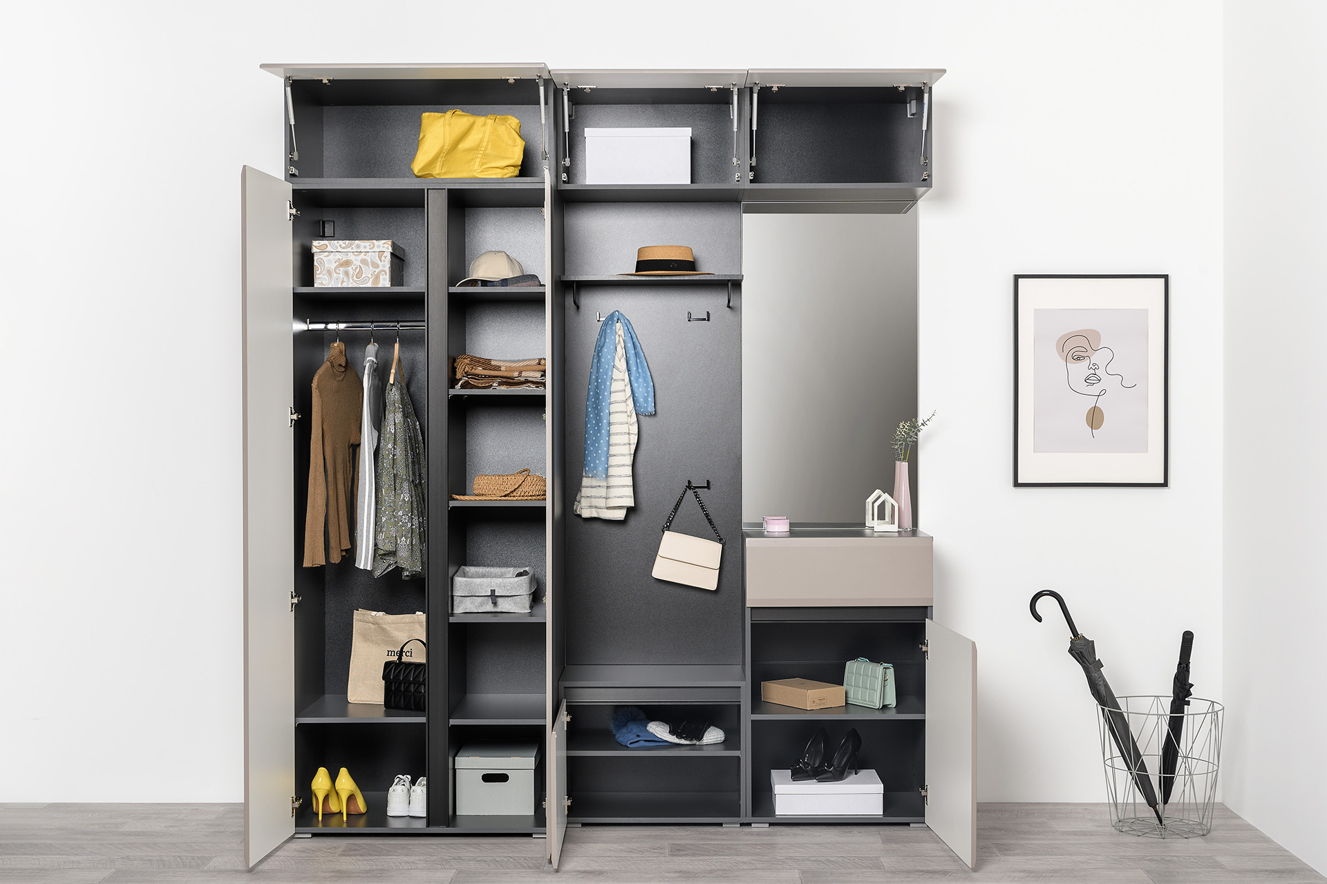 Вместительная система для хранения одежды, обуви и хозяйственных принадлежностей.