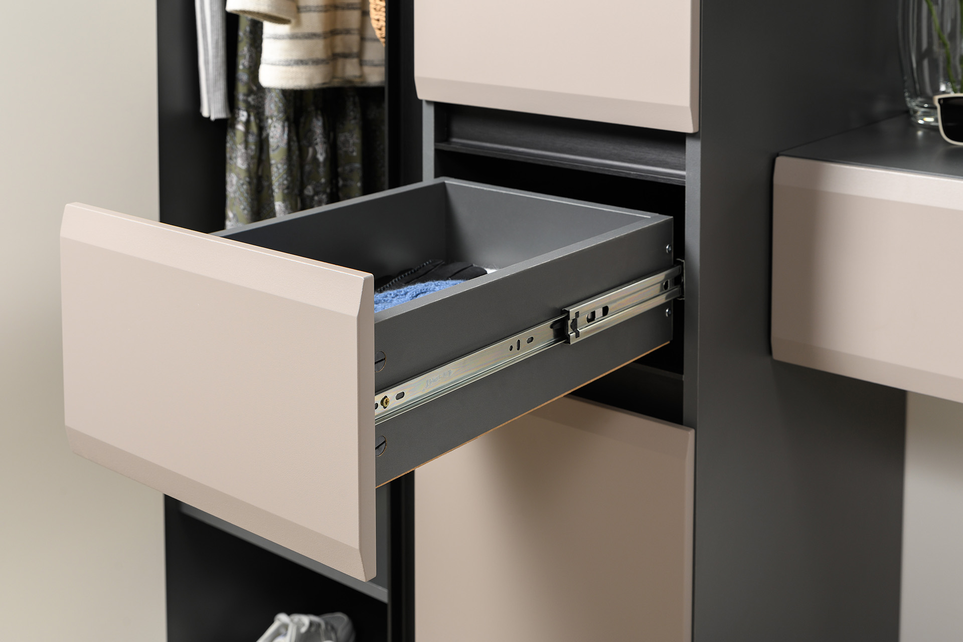 Шкаф для одежды Сидней 16.367.01 антрацит, веллюто капучино ПВХ (универсальная сборка)