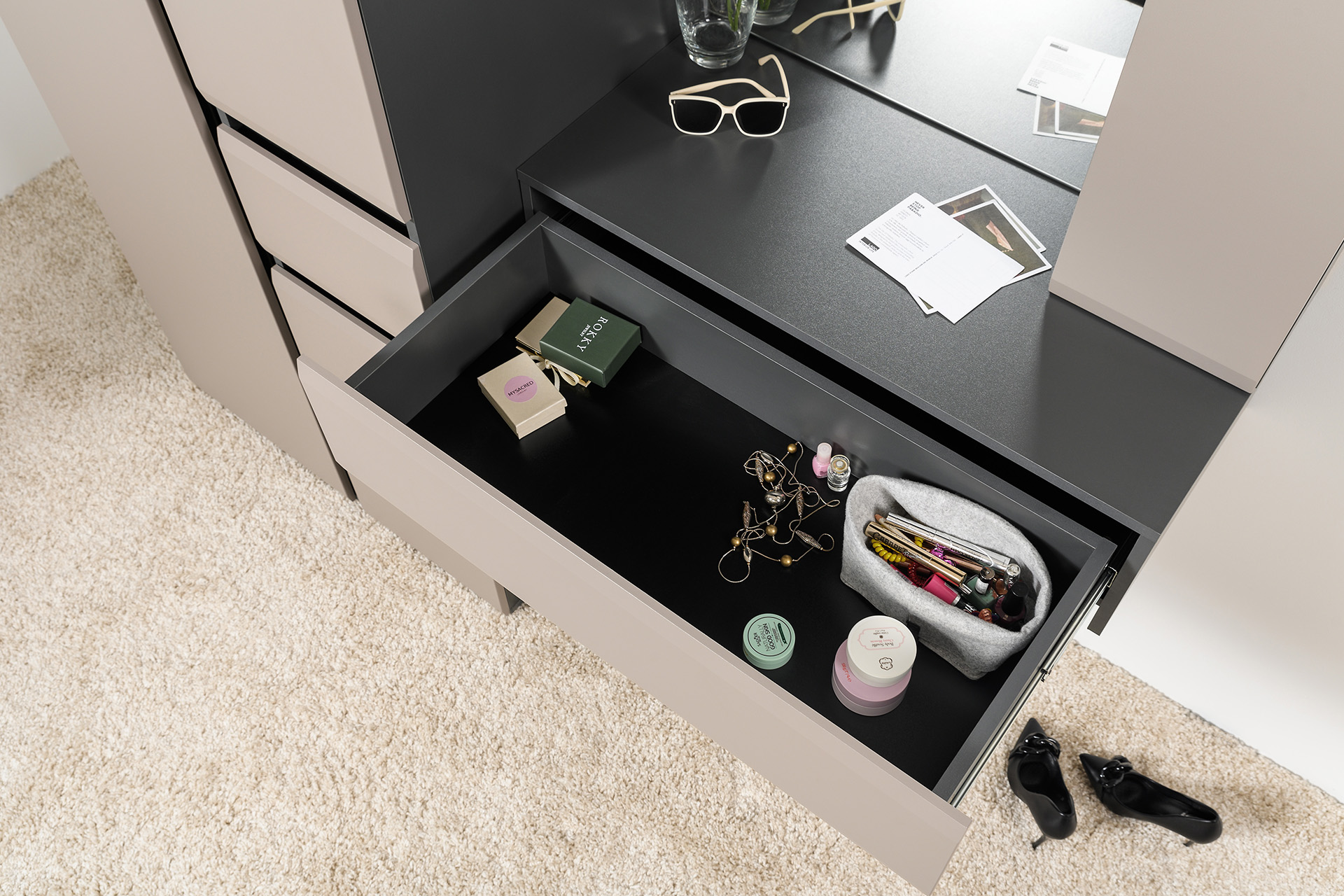 Комод Сидней 16.231.02 антрацит, веллюто капучино ПВХ (универсальная сборка)