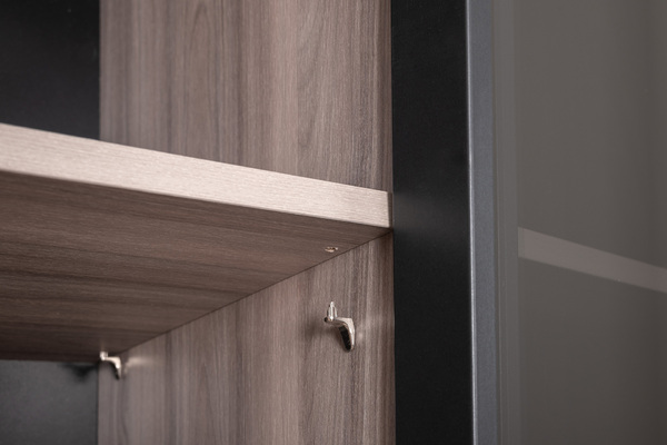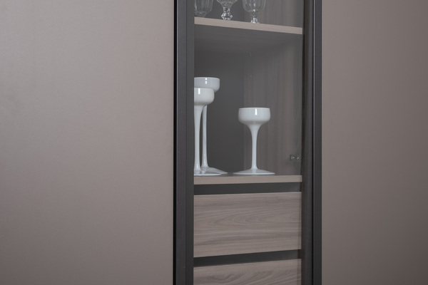 Разнообразие модулей и возможность их напольной и настенной установки позволит создать гостиную оптимальной конфигурации. Распашные фасады с механизмом push-to-open, направляющие скрытого монтажа в ящиках, петли с доводчиками, регулируемые опоры, крепеж в комплекте – комфорт продуман до мелочей.