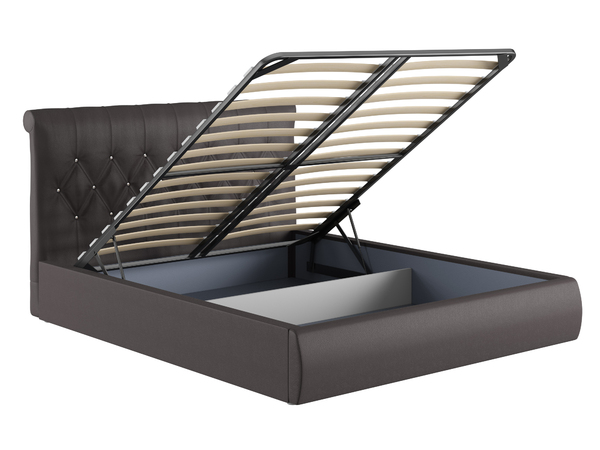 Кровать Тиффани 160 экокожа темно-коричневая с ортопедическим основанием и подъемным механизмом Санта