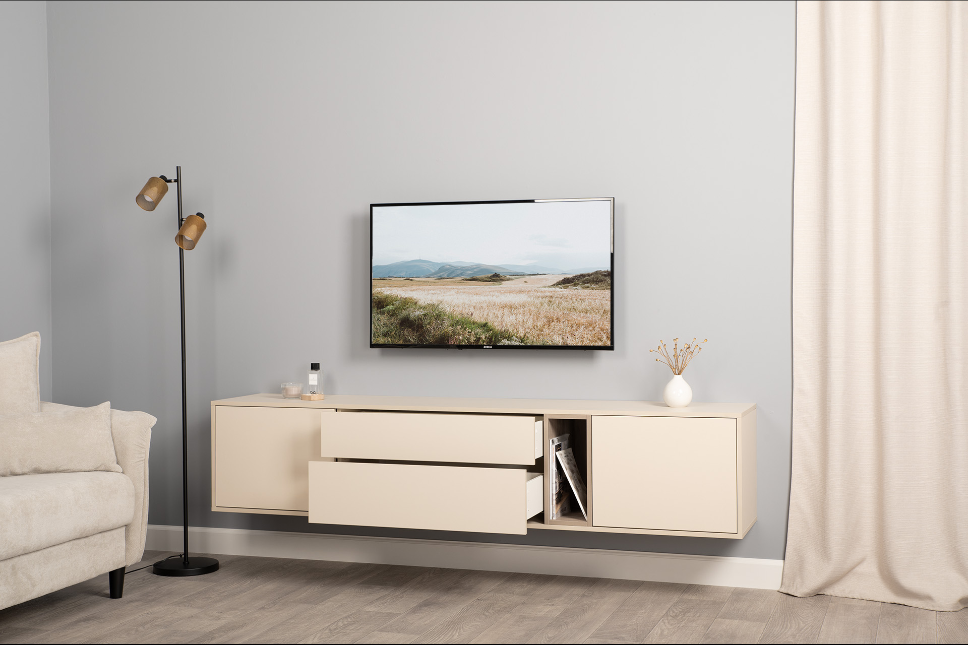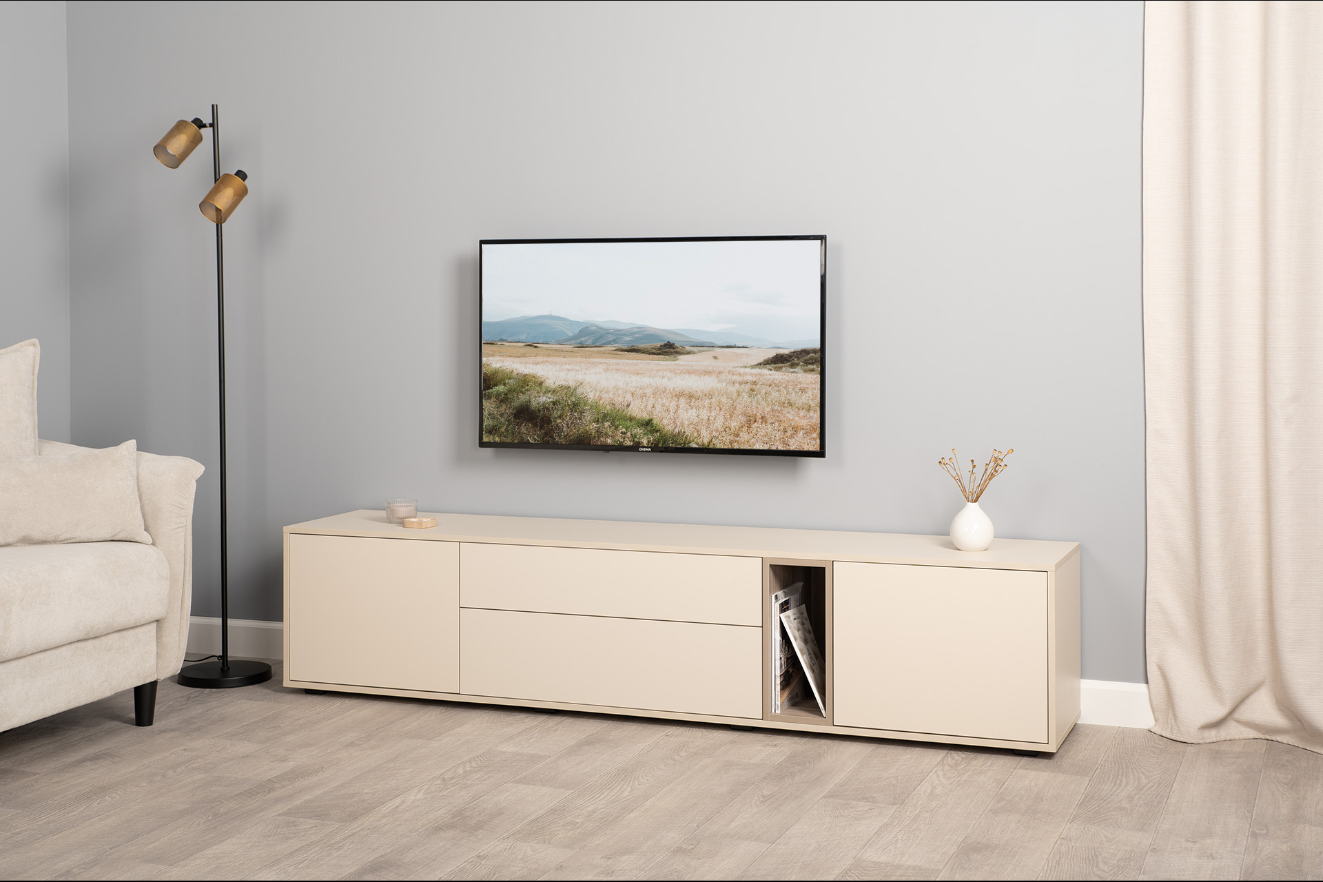 Тумба под ТВ в гостиную Бьянка ясень анкор светлый