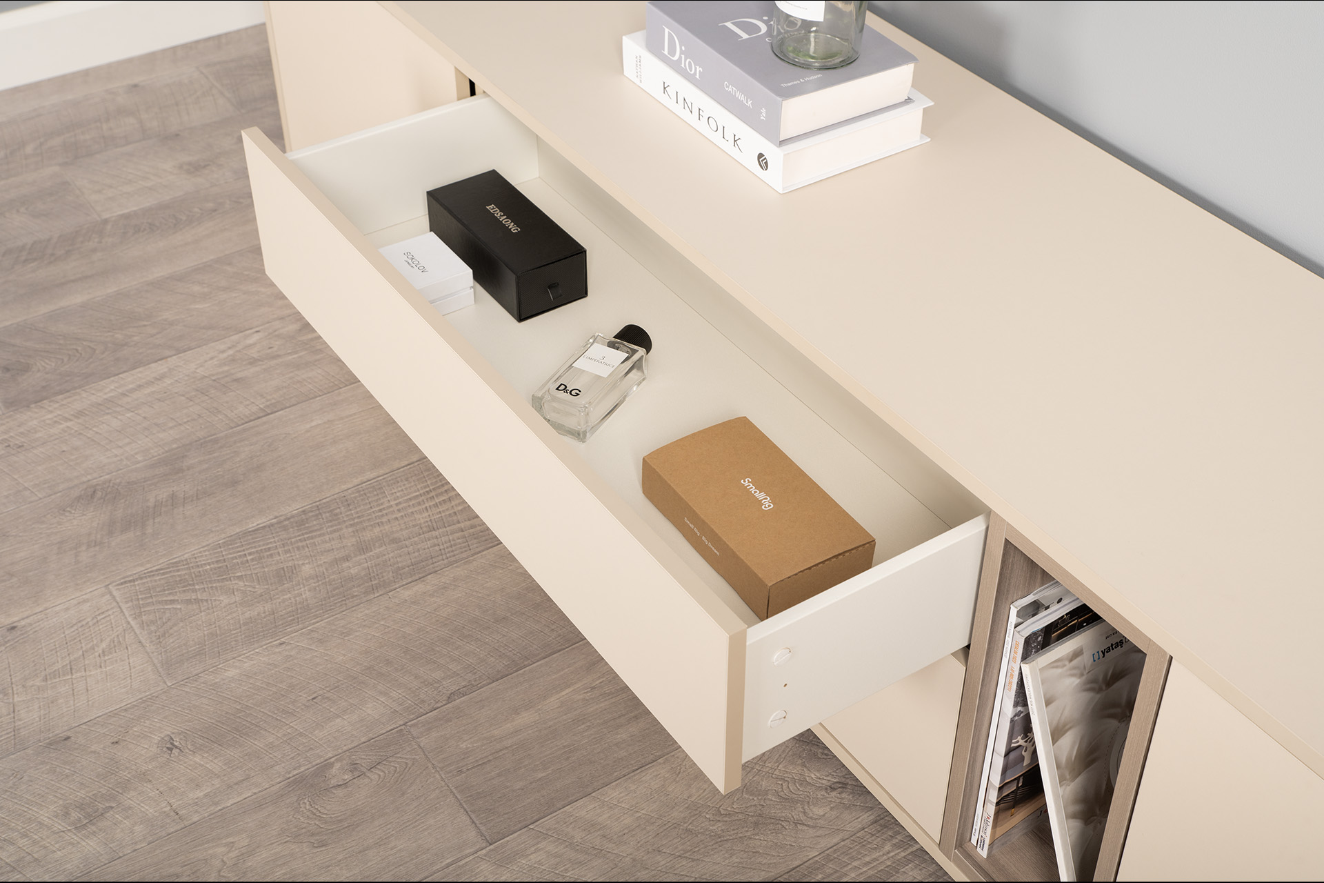 Тумба под ТВ в гостиную 13.267.03 белый PE шагрень, альберо, милк софт ПВХ