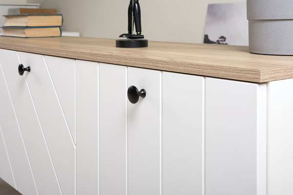 Тумба под ТВ в гостиную Квадро 13.276 белый PE шагрень, черный