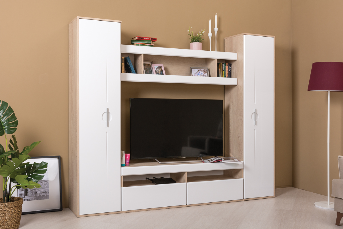 Тумба под ТВ в гостиную 13.267.03 белый PE шагрень, альберо, милк софт ПВХ