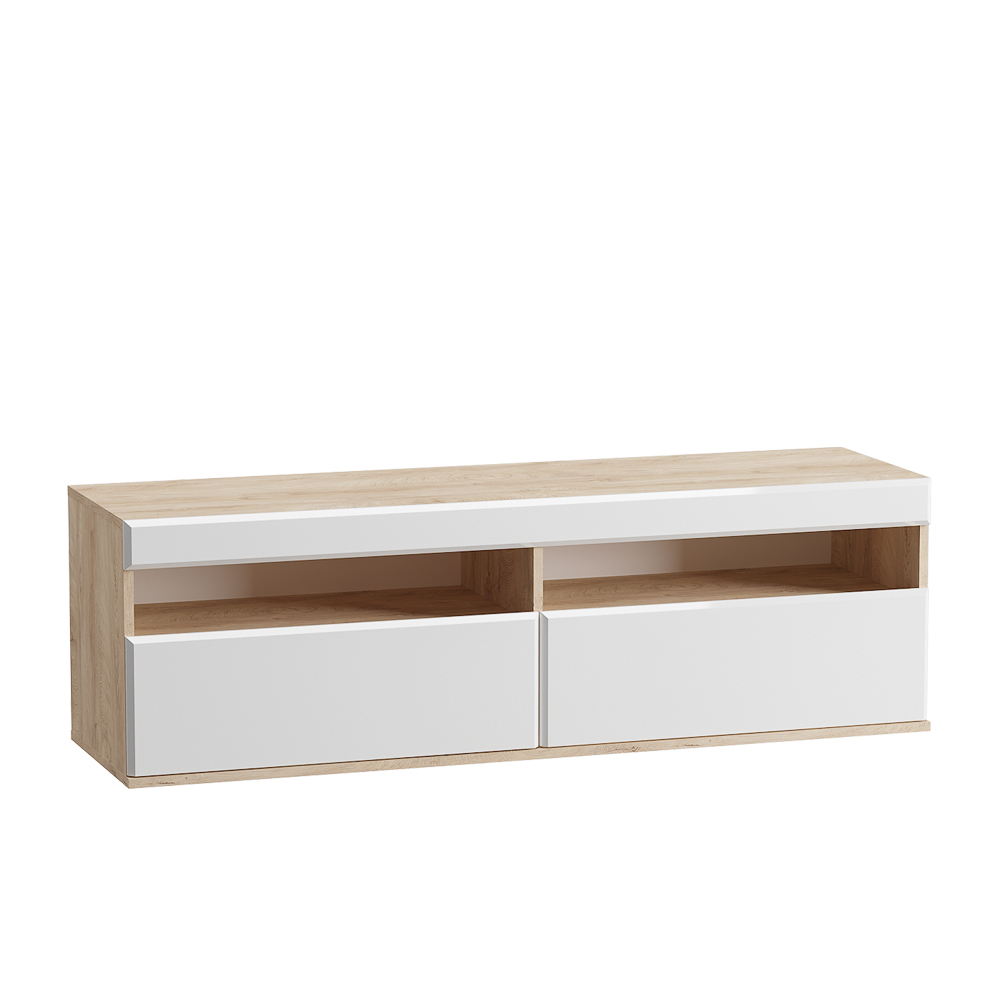 Тумба под ТВ в гостиную Альба дуб золотой CRAFT, белый премиум, без подсветки