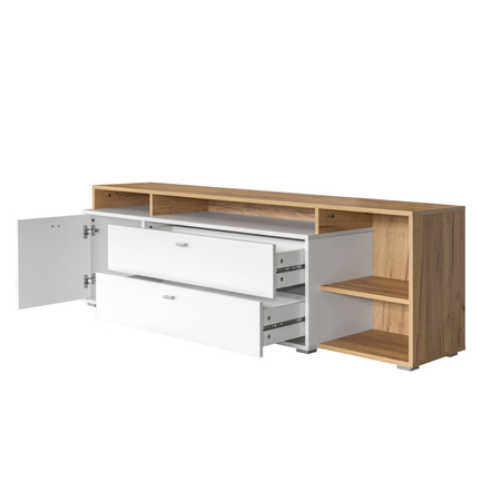 Тумба под ТВ в гостиную Альба дуб золотой CRAFT, белый премиум, без подсветки