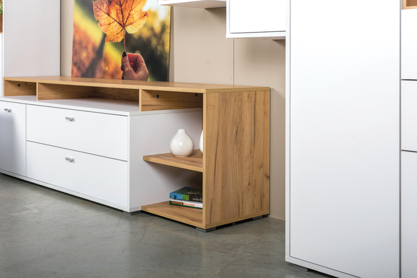 Тумба под ТВ в гостиную Бэль 10.92 белый премиум, дуб золотой CRAFT