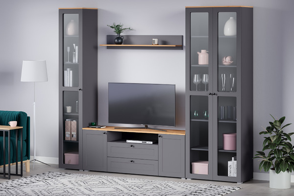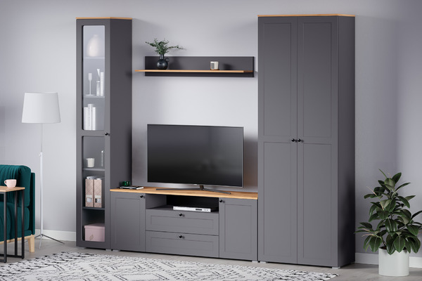 Тумба под ТВ в гостиную Остин 16.47 серый графит 0162 РЕ, дуб золотой CRAFT, графит ZB 856-2 ПВХ