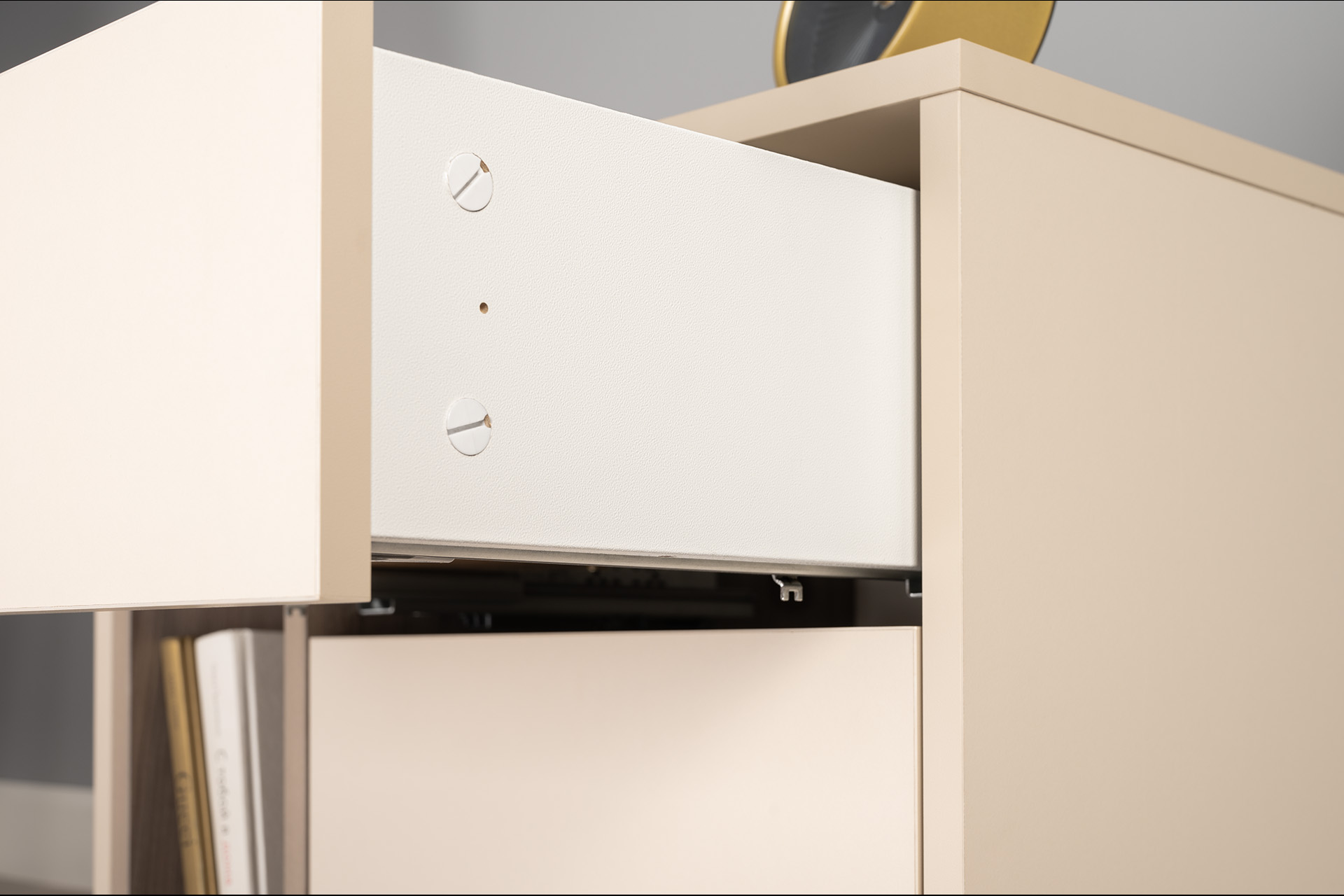 Комод Тайл 16.237 сатин 7045 SU, эмили блаш U9135, белый PE шагрень, собирается на любую сторону