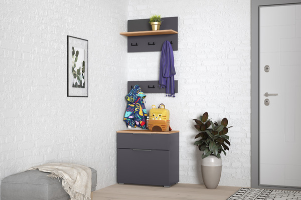 Вешалка навесная в прихожую Юнона дуб белый CRAFT, серый шифер