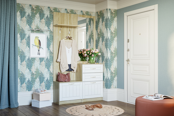 Вешалка Оливия НМ 040.59Х выполнена в виде настенной панели с тремя крючками. Сверху модуля располагается полка для головных уборов и аксессуаров. Вешалка обеспечит быстрый доступ к самым нужным предметам гардероба.