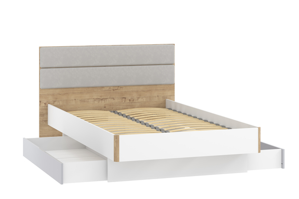 Кровать детская Морти НМ 041.20 с 2 ящиками НМ 041.20 и ортопедическим основанием, дуб бунратти, белый, велюр ультра смог